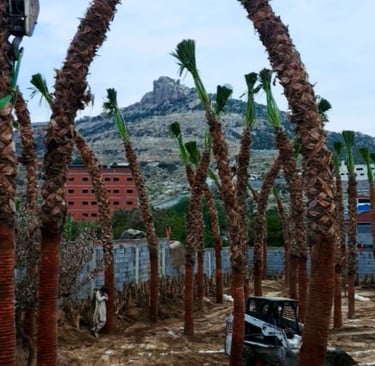 نوفر توريد وزراعة النخل الواشنطني ، تركيب حجر الربرب ، ديكور الطين التراثي الخارجي والشبوك الأمنية والأسلاك الشائكة بجودة عالية.